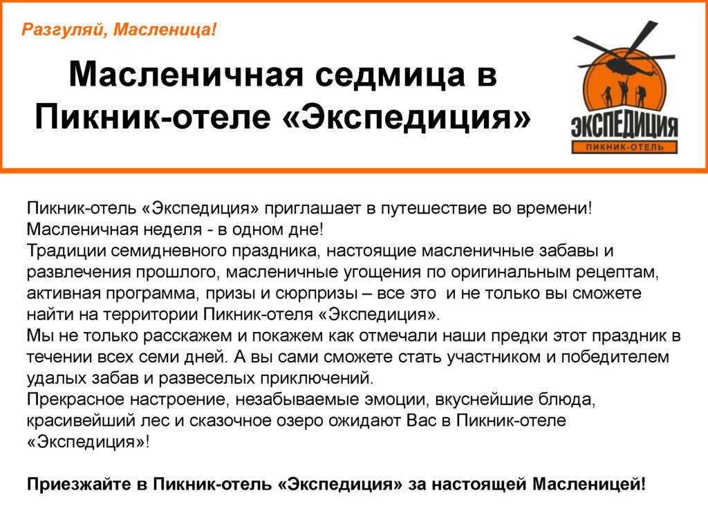 Один из самых любимых зимних праздников большинства людей – масленица. Славянские обычаи провожать зиму веселыми народными гуляниями – это повод собрать сотрудников компании в корпоративный тимбилдинг на природе, партнеров, инвесторов для совместного проведения празднования. Веселые моменты сплотят коллег, позволят людям стать дружнее и лучше понимать друг друга. А позитивно заряженные и отдохнувшие сотрудники станут залогом реализации проектов и успешности фирмы.
